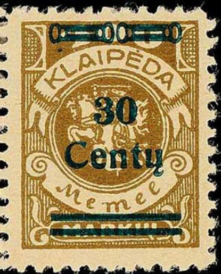 Type: stamp Issuer: Lithuanian occupation of Memel Date: 1923 Denom: ?