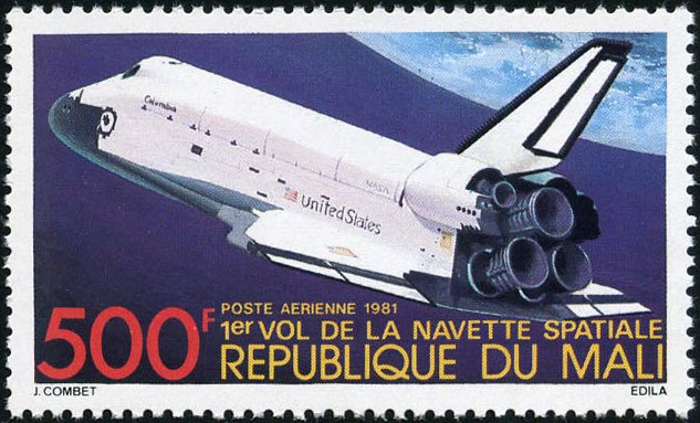 Visibility: public Image owner: none airmail 7/6/1981 500fr multi issue=Space Shuttle unwmk perf=13x12.75 Crops No visible images cropped from this one. Measurements Resolution is unknown. Source Source name: Colnect File URL: http://i.colnect.net/b/1049/686/First-space-flight-of-the-Space-Shuttle---In-space-flight.jpg Uploaded August 31, 2014, 6:20 pm by Stan Shebs |