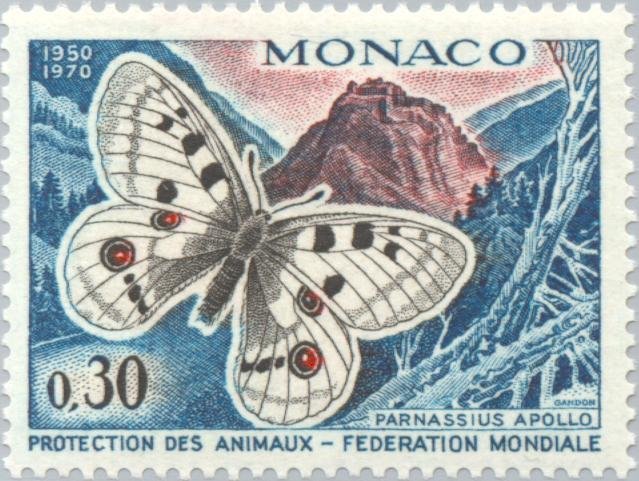 Visibility: public Image owner: none postage 4/25/1970 0.30fr multi issue=20th Anniversary of World Federation for Protection of Animals dt=animals (1970 Monaco) d=Parnassius apollo (1970) unwmk perf=13x12.75 Crops No visible images cropped from this one. Measurements Resolution is unknown. Source Source name: Colnect File URL: http://i.colnect.net/images/b/148/177/Apollo-Parnassius-apollo.jpg Uploaded August 31, 2014, 7:59 pm by Stan Shebs |