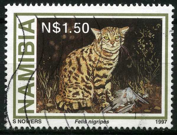Visibility: public Image owner: none postage 6/12/1997 $1.50 multi dt=Small Wildcats d=Felis nigripes (1997) unwmk Crops No visible images cropped from this one. Measurements Resolution is unknown. Source Source name: Colnect File URL: http://i.colnect.net/b/1407/856/Black-footed-Cat-Felis-nigripes.jpg Uploaded September 1, 2014, 1:41 pm by Stan Shebs |