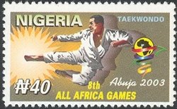 Visibility: public Image owner: none postage 10/3/2003 40.00n multi issue=8th All Africa Games unwmk Crops No visible images cropped from this one. Measurements Resolution is unknown. Source Source name: Colnect File URL: http://i.colnect.net/b/905/910/Taekwondo.jpg Uploaded September 1, 2014, 3:57 pm by Stan Shebs |