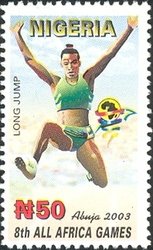 Visibility: public Image owner: none postage 10/3/2003 50.00n multi issue=8th All Africa Games unwmk Crops No visible images cropped from this one. Measurements Resolution is unknown. Source Source name: Colnect File URL: http://i.colnect.net/b/905/911/Long-jump.jpg Uploaded September 1, 2014, 3:57 pm by Stan Shebs |