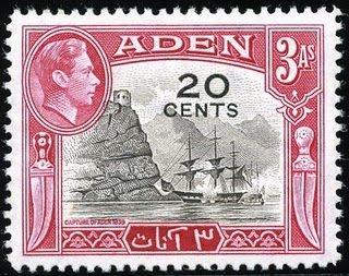 Visibility: public Image owner: none postage 10/1/1951 20c brn&red issue=new currency d=Capture of Aden 1839 ovpt=value oc=blk on=1939-3a wmk=mult crown & script CA perf=12.5 Crops No visible images cropped from this one. Measurements Resolution is unknown. Source Source name: Colnect File URL: http://i.colnect.net/b/559/750/Capture-of-Aden-1839-surcharged-with-new-value.jpg Uploaded January 29, 2014, 2:49 pm by Stan Shebs |