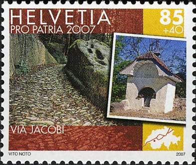 Visibility: public Image owner: none postage 5/10/2007 85(c) multi issue=Cultural routes in Switzerland dt=cultural routes in Switzerland d=Via Jacobi unwmk Crops No visible images cropped from this one. Measurements Resolution is unknown. Source Source name: Colnect File URL: http://i.colnect.net/b/699/097/Via-Jacobi.jpg Uploaded May 28, 2013, 7:26 pm by Stan Shebs |