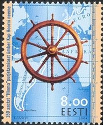 Visibility: public Image owner: none postage 2/18/2004 8.00(k) multi issue=Hioma sailing around Cape Horn 150th d=ship's wheel & map of Hioma route unwmk Crops No visible images cropped from this one. Measurements Resolution is unknown. Source Source name: Colnect File URL: http://i.colnect.net/b/403/501/Sailing-Around-Cape-Horn.jpg Uploaded September 2, 2014, 6:02 pm by Stan Shebs |