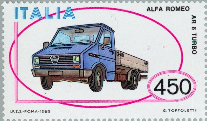 Visibility: public Image owner: none postage 7/4/1986 450(l) multi dt=Italian Vehicles wmk=stars Crops No visible images cropped from this one. Measurements Resolution is unknown. Source Source name: Colnect File URL: http://i.colnect.net/b/176/528/Italian-Motor-Industry--Alfa-Romeo.jpg Uploaded September 3, 2014, 6:22 pm by Stan Shebs |