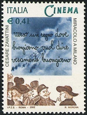 Visibility: public Image owner: none postage 5/10/2002 0,41€ multi dt=Movie Scenes from Italian Cinema unwmk perf=13.25x14 Crops No visible images cropped from this one. Measurements Resolution is unknown. Source Source name: Colnect File URL: http://i.colnect.net/b/852/409/Miracolo-a-Milano-Cesare-Zavattini.jpg Uploaded September 3, 2014, 6:54 pm by Stan Shebs |