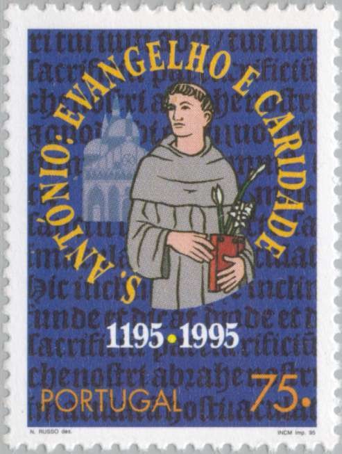 Visibility: public Image owner: none postage 6/13/1995 75esc multi issue=500th Anniversary of the Birth of Anthony of Padua unwmk Crops No visible images cropped from this one. Measurements Resolution is unknown. Source Source name: Colnect File URL: http://i.colnect.net/images/b/179/576/Padua-Antonius-van.jpg Uploaded September 4, 2014, 3:00 pm by Stan Shebs |