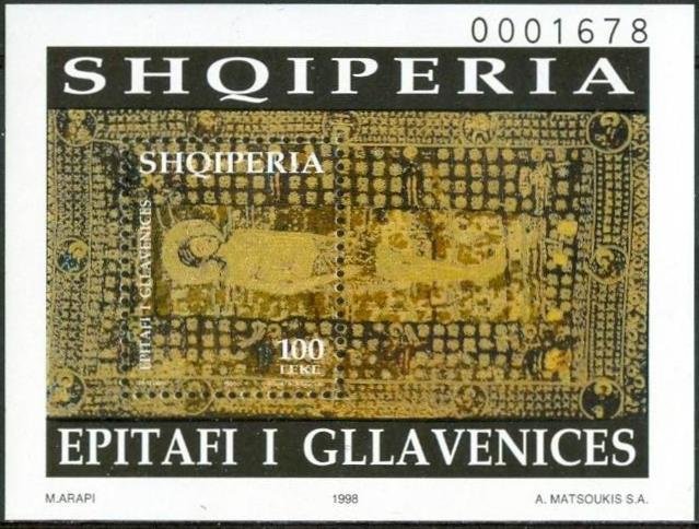 Visibility: public Image owner: none Crops No visible images cropped from this one. Measurements Resolution is unknown. Source Source name: Colnect File URL: http://i.colnect.net/b/1375/764/Epitaph-of-Gllavenica-upper-portion-of-cloth.jpg Uploaded September 5, 2014, 2:10 pm by Stan Shebs |