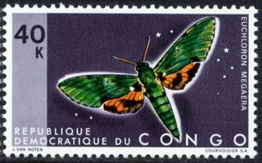 Visibility: public Image owner: none postage 2/24/1971 40k multi dt=butterflies & moths d=Euchloron megaera (1971) unwmk Crops No visible images cropped from this one. Measurements Resolution is unknown. Source Source name: Colnect File URL: http://i.colnect.net/b/1104/902/Verdant-Hawk-moth-Euchloron-megaera.jpg Uploaded September 6, 2014, 3:56 pm by Stan Shebs |