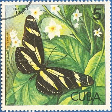 Visibility: public Image owner: none postage 2/25/1982 5c multi dt=butterflies (1982 Cuba) d=Heliconius charithonius ramsdeni unwmk perf=12.75 Crops No visible images cropped from this one. Measurements Resolution is unknown. Source Source name: Colnect File URL: http://i.colnect.net/b/671/125/Zebra-Longwing-Heliconius-charithonius-ssp-ramsdeni.jpg Uploaded September 6, 2014, 5:19 pm by Stan Shebs |