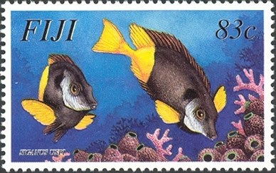 Visibility: public Image owner: none postage 8/12/2003 83c multi issue=Fiji's Endemic Fish dt=Siganus uspi rabbitfishes d=Siganus uspi unwmk Crops No visible images cropped from this one. Measurements Resolution is unknown. Source Source name: Colnect File URL: http://i.colnect.net/b/1612/967/Bicolored-Foxface-Siganus-uspi-.jpg Uploaded September 6, 2014, 7:15 pm by Stan Shebs |