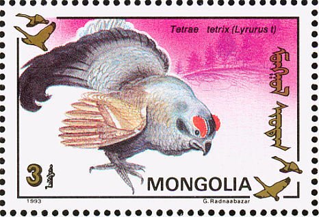 Visibility: public Image owner: none postage 2/3/1993 3t multi issue=Birds 1993 dt=birds (1993 Mongolia) d=Lyrurus tetrix (1993) unwmk perf=14.25 Crops No visible images cropped from this one. Measurements Resolution is unknown. Source Source name: Colnect File URL: http://i.colnect.net/images/b/860/494/Black-Grouse-Tetrao-tetrix.jpg Uploaded September 8, 2014, 6:20 pm by Stan Shebs |