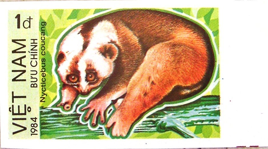 |   (939 x 522 pixels) | Type: stamp Issuer: Vietnam  Date: 1984 Denom: ? Visibility: public Image owner: none postage 2/26/1984 1d multi dt=Protected Animals (1984) d=Nycticebus coucang (1984) unwmk Crops No visible images cropped from this one. Measurements Resolution is unknown. Source Source name: Colnect File URL: http://i.colnect.net/b/1472/415/Sunda-Slow-Loris-Nycticebus-coucang---Imperforate.jpg Uploaded September 9, 2014, 1:06 am by Stan Shebs |
