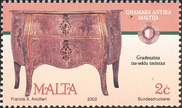 Visibility: public Image owner: none postage 3/27/2002 2c multi dt=antique Maltese furniture d=credenza unwmk Crops No visible images cropped from this one. Measurements Resolution is unknown. Source Source name: WNS File URL: http://d2cdm2jef6kgc7.cloudfront.net/stamps/2002/MT/MT005.02.jpg Uploaded April 14, 2012, 2:02 pm by Stan Shebs |