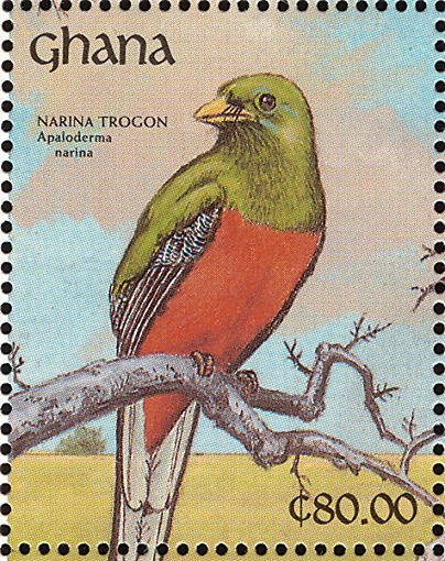 Visibility: public Image owner: none postage 10/14/1991 80c multi issue=The Birds of Ghana d=Narina trogon Apaloderma narina (1991) unwmk perf=14.25 Crops No visible images cropped from this one. Measurements Resolution is unknown. Source Source name: Colnect File URL: http://i.colnect.net/b/1459/780/Narina-Trogon Apaloderma-narina.jpg Uploaded September 9, 2014, 4:14 pm by Stan Shebs |