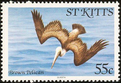Visibility: public Image owner: none postage 2/5/1981 55c multi issue=1981 dt=birds (1981 St. Kitts) d=brown pelican diving wmk=crown & CA spiral Crops No visible images cropped from this one. Measurements Resolution is unknown. Source Source name: Colnect File URL: http://i.colnect.net/images/b/1659/316/Brown-Pelican-nbsp-.jpg Uploaded September 10, 2014, 1:01 pm by Stan Shebs |