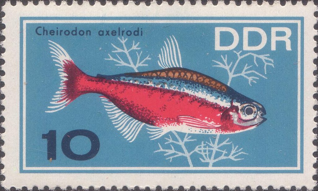 Visibility: public Image owner: none postage 11/8/1966 10pf multi dt=tropical fishes (1966) d=Cheirodon axelrodi unwmk Crops No visible images cropped from this one. Measurements Resolution is unknown. Source Source name: Wikimedia Commons File URL: http://upload.wikimedia.org/wikipedia/commons/3/32/Stamp_GDR_1966_Michel_1222.JPG Uploaded April 19, 2012, 6:32 pm by Stan Shebs |