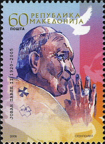 Visibility: public Image owner: none postage 5/9/2006 60(d) multi issue=10th Anniversary of the first Europa stamps d=Portrait of Pope John Paul II unwmk Crops No visible images cropped from this one. Measurements Resolution is unknown. Source Source name: WNS File URL: http://d2cdm2jef6kgc7.cloudfront.net/stamps/2006/MK/MK014.06.jpg Uploaded August 9, 2013, 1:54 pm by Stan Shebs |