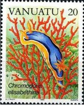 Visibility: public Image owner: none postage 11/11/1985 20v multi dt=nudibranches (1985) d=Chromodoris elisabethina wmk=crown & CA spiral perf=14.25 Crops No visible images cropped from this one. Measurements Resolution is unknown. Source Source name: Colnect File URL: http://i.colnect.net/b/1231/149/Elisabeth-s-Chromodoris-Chromodoris-elisabethina.jpg Uploaded September 10, 2014, 2:52 pm by Stan Shebs |