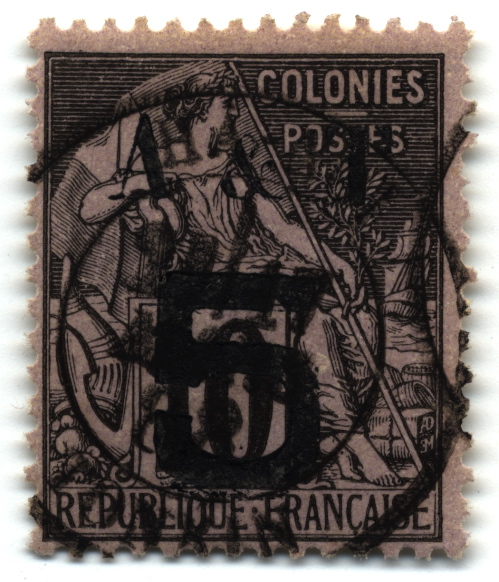 |   (499 x 582 pixels) | Type: stamp Issuer: Annam & Tonkin  Date: 1888 Denom: 5c Visibility: public Image owner: none postage blk pc=lav issue=1888a d=Commerce (1881) ovpt=A&T//value oc=blk on=issuer=French Colonies-1881-10c-blk unwmk perf=14x13.5 Object 675 ( postage blk pc=lav issue=1888a d=Commerce (1881) ovpt=A&T//value oc=blk on=issuer=French Colonies-1881-10c-blk unwmk perf=14x13.5) Crops No visible images cropped from this one. Measurements Resolution is unknown. Source Source name: Stan Shebs Uploaded January 1, 2011, 12:00 pm by Stan Shebs |