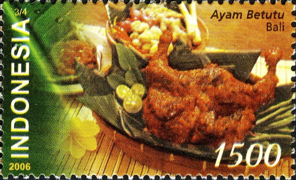 Visibility: public Image owner: none postage 7/6/2006 1500r multi dt=local foods (2006) d=Ayam Betutu unwmk perf=12.5 Crops No visible images cropped from this one. Measurements Resolution is unknown. Source Source name: Colnect File URL: http://i.colnect.net/b/1586/787/Indonesian-Traditional-Foods---Ayam-Betutu.jpg Uploaded September 10, 2014, 11:05 pm by Stan Shebs |