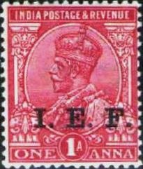 Visibility: public Image owner: none military 1a issue=India Expeditionary Force d=IEF overprint on King George V wmk=star Crops No visible images cropped from this one. Measurements Resolution is unknown. Source Source name: Colnect File URL: http://i.colnect.net/b/1574/191/King-George-V---Overprint--IEF-.jpg Uploaded September 11, 2014, 5:43 pm by Stan Shebs |
