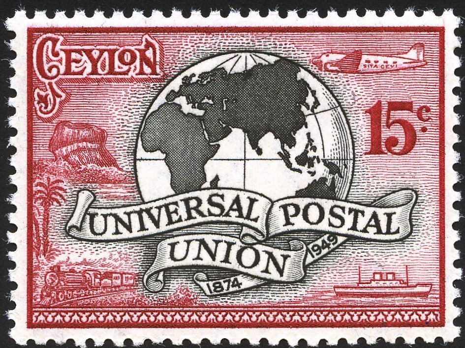 Visibility: public Image owner: none postage 10/10/1949 15c issue=UPU 75th wmk=lotus & Sri mult perf=14 Crops No visible images cropped from this one. Measurements Resolution is unknown. Source Source name: Colnect File URL: http://i.colnect.net/b/1430/408/75th-Anniversary-of-the-UPU.jpg Uploaded September 11, 2014, 10:36 pm by Stan Shebs |