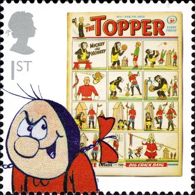 Visibility: public Image owner: none postage 3/20/2012 1st multi issue=Comics d=Topper unwmk perf=14.5 Crops No visible images cropped from this one. Measurements Resolution is unknown. Source Source name: Colnect File URL: http://i.colnect.net/images/b/1304/508/The-Topper-and-Beryl-the-Peril.jpg Uploaded January 23, 2014, 5:44 pm by Stan Shebs |