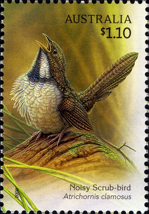 Visibility: public Image owner: none postage 9/9/2009 $1.10 multi issue=Australian Songbirds dt=Australian Songbirds d=Noisy Scrub-bird unwmk Crops No visible images cropped from this one. Measurements Resolution is unknown. Source Source name: Colnect File URL: http://i.colnect.net/b/666/304/Noisy-Scrubbird-Atrichornis-clamosus.jpg Uploaded September 13, 2014, 2:59 pm by Stan Shebs |