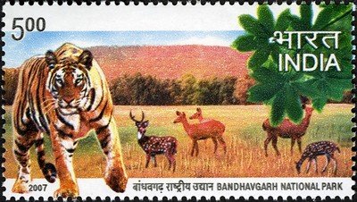 Visibility: public Image owner: none postage 5/31/2007 5.00r multi issue=National Parks of India d=Bandhavgarh National Park unwmk Crops No visible images cropped from this one. Measurements Resolution is unknown. Source Source name: Colnect File URL: http://i.colnect.net/images/b/542/622/Tiger-Panthera-tigris---Bandhavgarh-National-Park.jpg Uploaded September 15, 2014, 5:41 pm by Stan Shebs |