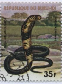 Visibility: public Image owner: none airmail 8/22/1977 35fr multi dt=African Animals (1977) d=Naja melanoleuca (1977 Burundi) unwmk Crops No visible images cropped from this one. Measurements Resolution is unknown. Source Source name: Colnect File URL: http://i.colnect.net/b/1324/145/Forest-Cobra-Naja-melanoleuca.jpg Uploaded September 15, 2014, 9:37 pm by Stan Shebs |