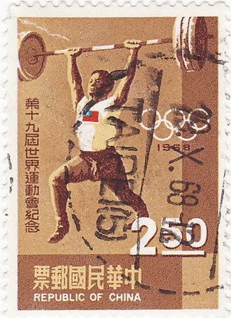 Visibility: public Image owner: none postage 10/12/1968 $2.50 multi issue=Olympics 1968 d=weightlifting unwmk perf=13 Crops No visible images cropped from this one. Measurements Resolution is unknown. Source Source name: Colnect File URL: http://i.colnect.net/b/1232/349/Weightlifting.jpg Uploaded September 15, 2014, 9:50 pm by Stan Shebs |