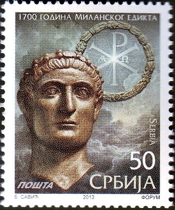 Visibility: public Image owner: none postage 4/5/2013 50(d) multi issue=100 Years of the Edicts of Milan unwmk Crops No visible images cropped from this one. Measurements Resolution is unknown. Source Source name: Colnect File URL: http://i.colnect.net/images/b/1525/139/Constantine.jpg Uploaded September 16, 2014, 6:48 pm by Stan Shebs |