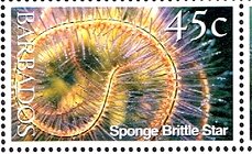 Visibility: public Image owner: none postage 5/31/2001 45c multi issue=Deep Sea Creatures dt=Deep Sea Creatures (2001) d=sponge brittle star wmk=crown & CA spiral perf=14.25x14.5 Crops No visible images cropped from this one. Measurements Resolution is unknown. Source Source name: Colnect File URL: http://i.colnect.net/b/1756/345/Sponge-Brittle-Star-Ophiothrix-suensonii.jpg Uploaded September 17, 2014, 12:35 am by Stan Shebs |