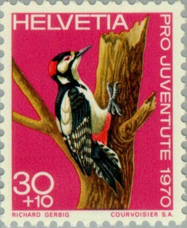 Visibility: public Image owner: none semipostal 12/1/1970 30+10(c) pnk&multi issue=Pro Juventute 1970 dt=birds (1970 Switzerland) d=Dendrocopos major (1970) unwmk Crops No visible images cropped from this one. Measurements Resolution is unknown. Source Source name: Colnect File URL: http://i.colnect.net/b/140/418/Great-Spotted-Woodpecker-Dendrocopos-major.jpg Uploaded September 2, 2012, 4:26 pm by Stan Shebs |