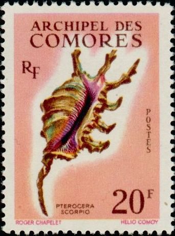 Visibility: public Image owner: none postage 1/13/1962 20fr dt=seashells (1962 Comoro Islands) d=Pterocera scorpio unwmk perf=13 Crops No visible images cropped from this one. Measurements Resolution is unknown. Source Source name: Colnect File URL: http://i.colnect.net/images/b/787/706/Scorpion-Spider-Conch-Lambis-scorpio.jpg Uploaded August 16, 2014, 3:13 pm by Stan Shebs |