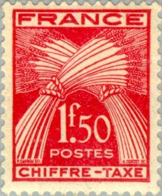 Visibility: public Image owner: none postage due 1.50fr issue=1943 postage due d=sheaves (CHIFFRE-TAXE) unwmk perf=13 Crops No visible images cropped from this one. Measurements Resolution is unknown. Source Source name: Colnect File URL: http://i.colnect.net/images/b/147/022/Sheaves-of-wheat.jpg Uploaded September 9, 2012, 12:05 am by Stan Shebs |