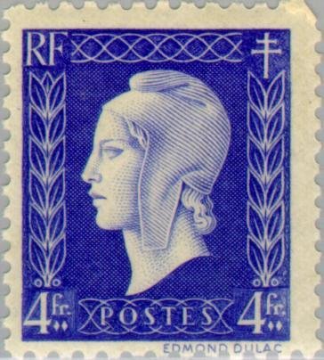 Visibility: public Image owner: none postage 12/1944 4fr issue=1944b d=Marianne (de Dulac) unwmk Crops No visible images cropped from this one. Measurements Resolution is unknown. Source Source name: Colnect File URL: http://i.colnect.net/images/b/143/568/Marianne-type-Dulac.jpg Uploaded August 16, 2014, 8:29 pm by Stan Shebs |