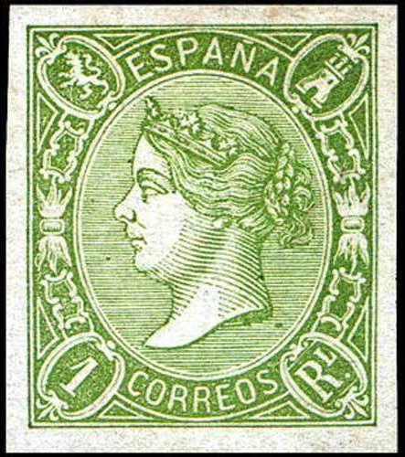Visibility: public Image owner: none postage 1/1/1865 1r yelgrn issue=1865 imperf d=Queen Isabella II (1865) unwmk imperf Crops No visible images cropped from this one. Measurements Resolution is unknown. Source Source name: Colnect File URL: http://i.colnect.net/b/662/271/Queen-Isabel-II.jpg Uploaded August 17, 2014, 12:53 pm by Stan Shebs |