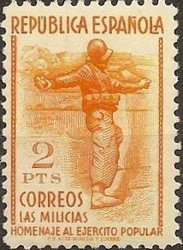Visibility: public Image owner: none postage 11/25/1938 2p org issue=militia republicans d=throwing bomb unwmk perf=14 Crops No visible images cropped from this one. Measurements Resolution is unknown. Source Source name: Colnect File URL: http://i.colnect.net/b/457/985/Homage-to-the-Popular-Army.jpg Uploaded August 17, 2014, 1:11 pm by Stan Shebs |