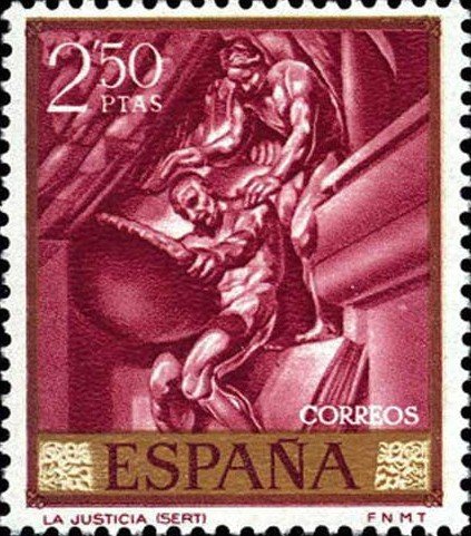 Visibility: public Image owner: none postage 3/24/1966 2.50p multi issue=Stamp Day 1966 dt=Sert paintings d=La Justicia by Sert unwmk perf=14 Crops No visible images cropped from this one. Measurements Resolution is unknown. Source Source name: Colnect File URL: http://i.colnect.net/b/625/463/-Justice--by-Sert.jpg Uploaded September 11, 2012, 3:22 am by Stan Shebs |