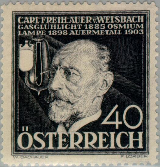 Visibility: public Image owner: none semipostal 12/6/1936 40+40g blblk dt=Austrian inventors d=Carl Auer von Welsbach unwmk perf=12.5 Crops No visible images cropped from this one. Measurements Resolution is unknown. Source Source name: Colnect File URL: http://i.colnect.net/images/b/135/963/Carl-Auer-von-Welsbach-1858-1929-gas-mantle-light.jpg Uploaded August 17, 2014, 2:28 pm by Stan Shebs |