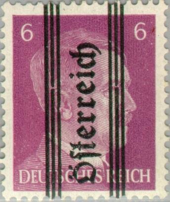 Visibility: public Image owner: none postage 5/22/1945 6pf vio issue=Styria overprints d=Adolf Hitler (1941) ovpt=bars//Oesterreich//bars oc=blk on=issuer=Germany-8/1/1941-6pf unwmk perf=14 Crops No visible images cropped from this one. Measurements Resolution is unknown. Source Source name: Colnect File URL: http://i.colnect.net/b/136/016/Overprint-German-stamp-Hitler.jpg Uploaded August 17, 2014, 2:29 pm by Stan Shebs |