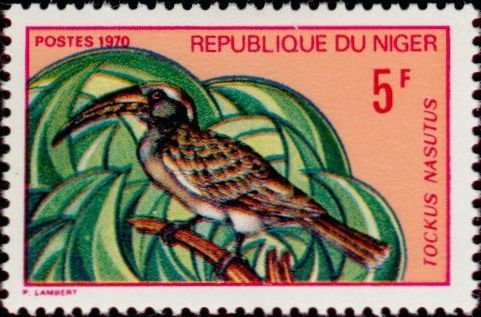 Visibility: public Image owner: none postage 1/4/1971 5fr multi issue=birds 1970-1 dt=birds (1967 Niger) d=gray hornbill unwmk perf=13 Crops No visible images cropped from this one. Measurements Resolution is unknown. Source Source name: Colnect File URL: http://i.colnect.net/b/998/017/African-Grey-Hornbill-Tockus-nasutus.jpg Uploaded August 17, 2014, 3:16 pm by Stan Shebs |