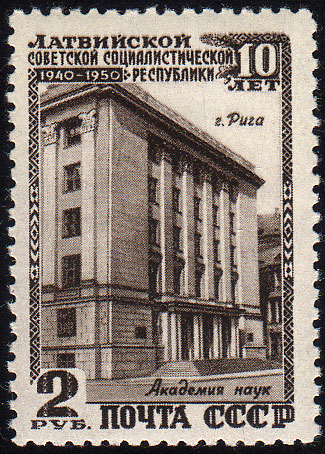 Visibility: public Image owner: none postage 9/1950 sep issue=Latvian SSR 10th d=Latvian Academy of Sciences unwmk perf=12 Crops No visible images cropped from this one. Measurements Resolution is unknown. Source Source name: Wikimedia Commons File URL: http://upload.wikimedia.org/wikipedia/commons/8/8e/Riga_1950_2rub_USSR.jpg Uploaded May 26, 2011, 5:34 am by Stan Shebs |
