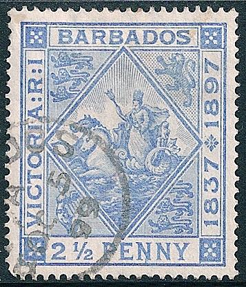 Type: stamp Issuer: Barbados Date: 1897 Denom: 2 1/2p