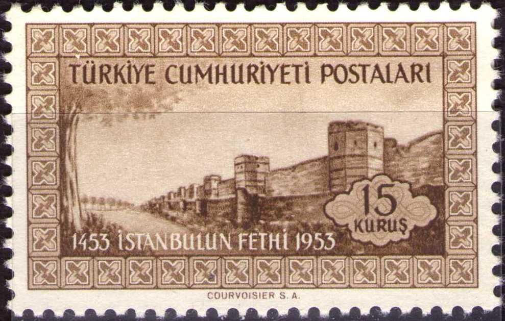 Visibility: public Image owner: none postage 5/29/1953 15k issue=Constantinople conquest 500th d=Ancient Walls of Topkapı Constantinople unwmk perf=11.75 Crops No visible images cropped from this one. Measurements Resolution is unknown. Source Source name: Colnect File URL: http://i.colnect.net/b/727/036/Ancient-Walls-of-Topkapı-Constantinople.jpg Uploaded August 17, 2014, 10:31 pm by Stan Shebs |