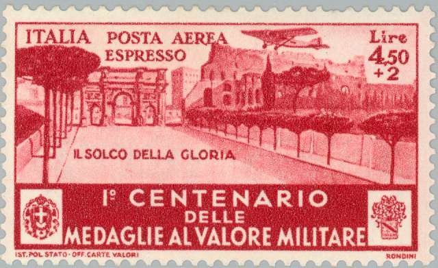 Visibility: public Image owner: none airmail special delivery 9/6/1934 4.50+2l redbrn issue=Medal of Valor 100th wmk=crown (Italy) perf=14 Crops No visible images cropped from this one. Measurements Resolution is unknown. Source Source name: Colnect File URL: http://i.colnect.net/images/b/188/157/Arch-of-Constantine--quot-the-groove-of-Glory-quot-.jpg Uploaded August 18, 2014, 3:39 pm by Stan Shebs |