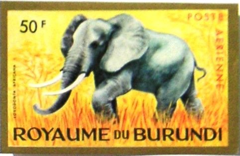 Visibility: public Image owner: none airmail 7/2/1964 50fr multi issue=1964 airmail dt=animals (1964 Burundi) d=Loxodonta africana (1964 Burundi) unwmk Crops No visible images cropped from this one. Measurements Resolution is unknown. Source Source name: Colnect File URL: http://i.colnect.net/b/555/022/African-Elephant-Loxodonta-africana.jpg Uploaded August 18, 2014, 7:57 pm by Stan Shebs |